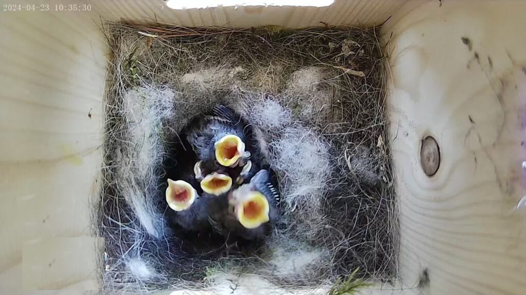 Le nichoir a été adopté par un couple de mésanges charbonnières dès le printemps 2024. Deux nichées se sont succédées. Au printemps 2025, les oiseaux ont sans tardé signé un nouveau bail. La première couvée a déjà pris son envol (mai 2025). Après un nettoyage, le nichoir est à nouveau opérationnel et prêt à accueillir une nouvelle famille.
